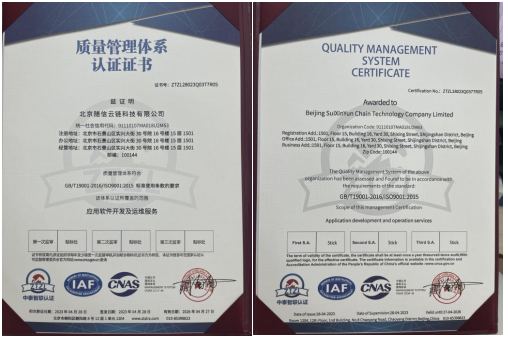 官宣!北京隨信云鏈科技有限公司榮獲ISO9001認證