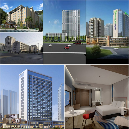 圖:簽約酒店項目(左上至右下):湛江濱海智選假日酒店、中山中心逸衡酒店、廣州增城新塘智選假日酒店、文山光大廣場智選假日酒店、南昌經開白水湖智選假日酒店、保山火車站智選假日酒店、蘭州西固智選假日酒店、廣州十甫voco酒店、廈門集美新城智選假日酒店