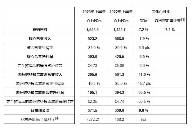 所有財(cái)務(wù)數(shù)據(jù)均以百萬(wàn)歐元(€m)為單位。除非另有說(shuō)明,本報(bào)告的業(yè)績(jī)涵蓋2023年6月30日之前的6個(gè)月期間(2023年上半年)和2023年6月30日之前的3個(gè)月期間(2023年第二季度),而進(jìn)行數(shù)據(jù)對(duì)比的對(duì)象為2022年6月30日之前的6個(gè)月期間(2022年上半年)和2022年6月30日之前的3個(gè)月期間(2022年第二季度)。除非另有說(shuō)明,否則評(píng)論基于2023年上半年的業(yè)績(jī)。所有評(píng)論和較之前業(yè)績(jī)的比較均不包括2022年7月剝離的多元健康(CHC)業(yè)務(wù)的業(yè)績(jī)。
