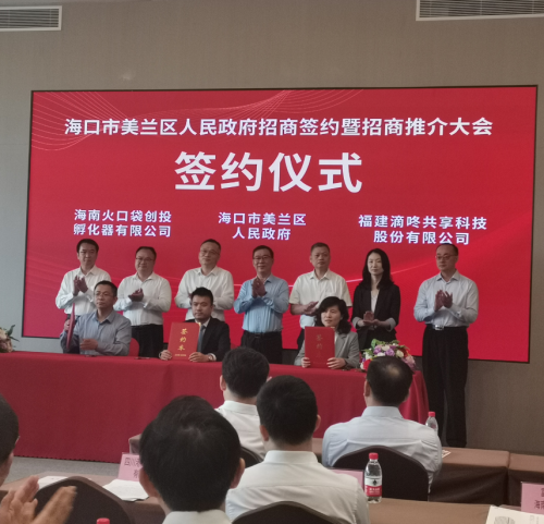 4月24日,海南省??诿捞m區人民政府招商推介暨簽約大會在??谂e行。此次活動是美蘭區主動出擊搶抓經濟復蘇新機遇、新市場,全面激發轄區經濟活力,打開美蘭政企合作新局面,呈現招商引資“走出去、引進來”碩果的一次展示。福建滴咚共享科技股份有限公司受邀參加本次活動,總裁陳瑞娜作為代表出席。