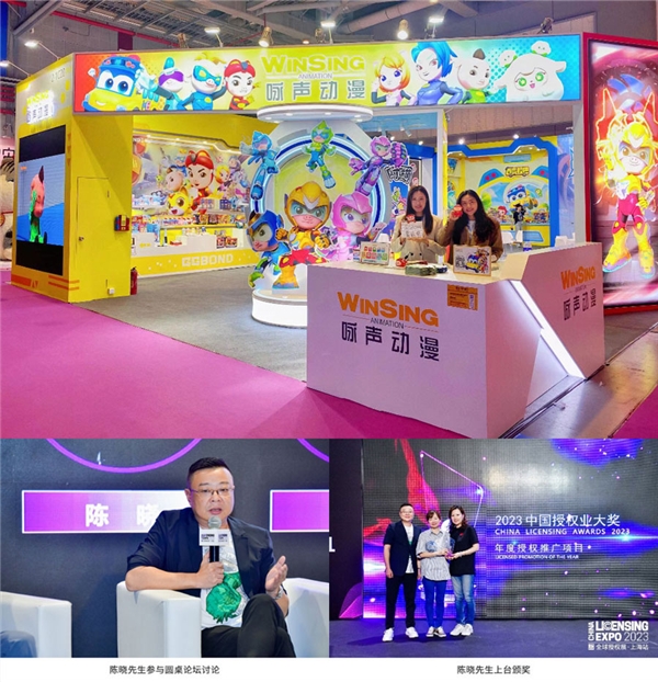 ?  6月28日至30日,詠聲動漫攜旗下豬豬俠、百變校巴、詠玩潮·羊圓圓等IP空降2023全球授權展·上海站(LEC),兩大全新IP《喵能戰士》《反斗聯萌》首次亮相,吸引眾多企業現場咨詢。展會期間,詠聲動漫副總裁、國際授權業協會大中華區顧問委員陳曉先生作為“2023年授權業論壇——圓桌對話”嘉賓,和多位行業大咖一起探討消費復蘇的當下,授權商與被授權商該如何應對急速變換的市場趨勢,現場分享實戰經驗,共同促進行業發展;此后,陳曉先生受邀出席 “2023中國授權業大獎”頒獎典禮,上臺為“年度授權推廣項目”頒發獎項。