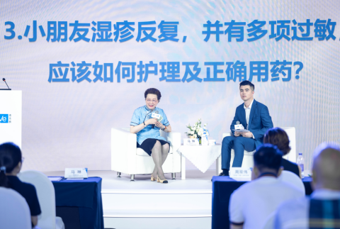 馬琳教授現場答疑左:北京兒童醫院皮膚科名譽主任馬琳教授;右:適樂膚(中國)醫學經理艾云飛先生