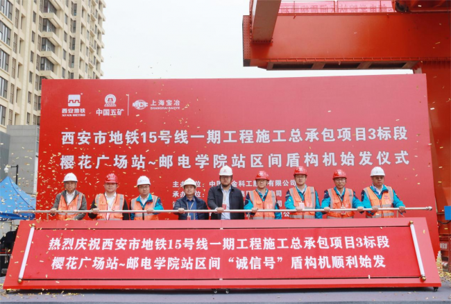 5月7日,隨著“誠信號”盾構機刀盤緩緩轉動,西安地鐵15號線一期工程櫻花廣場站~郵電學院站區間左線盾構順利始發。