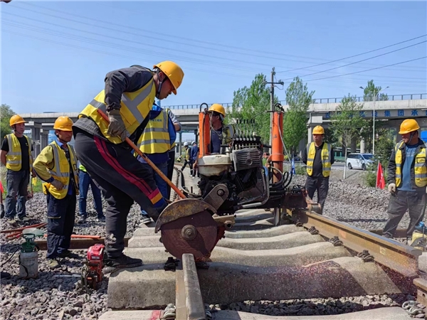 上午8時許,隨著駐站聯(lián)絡(luò)員精準(zhǔn)的天窗施工報點后,上、下行線共200余名作業(yè)人員迅速上道,開始鋸軌、清除既有線枕木頭及枕木盒道碴、整平既有道床、撥移既有線路與預(yù)鋪線路連接等工作,并在線路撥移到位后,迅速進行鋼軌焊接、上碴整道、大機搗固、精調(diào)等作業(yè)。隨后,工務(wù)檢查軌道靜態(tài)幾何尺寸,并進行電氣信號聯(lián)鎖試驗,于中午12:30分左右完成施工,恢復(fù)線路。為確保營業(yè)線施工安全質(zhì)量進度全面受控,項目部超前謀劃,統(tǒng)籌組織,突出關(guān)鍵環(huán)節(jié)和重點工序,從資源配置、方案優(yōu)化、安全質(zhì)量等方面入手,明確責(zé)任分工,優(yōu)化組織設(shè)計,動態(tài)跟蹤調(diào)整,并嚴(yán)格按照鐵路部門有關(guān)文件要求設(shè)置封鎖及慢行防護,最終圓滿完成了撥接施工任務(wù)。
