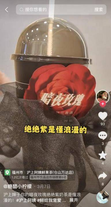 滬上阿姨聯合抖音生活服務「春光好食節」營銷節點,線上圍繞熱點話題#奶茶可以這么浪漫的不多,完成了一次“現象級”的新品營銷活動。配合春日營銷氛圍,滬上阿姨重點鋪設以優質浪漫為主的種草視頻,貼合新品氣質的同時,也能為消費者營造滿滿的節日氛圍。為了配合新品內容上線節奏上,將更多資源集中在新品上線5天,聯動超過20位高粉達人集中鋪設了超過千條種草視頻,力求在短時間內迅速引爆新品,達成新品即爆品。新品上市3天售賣超63萬杯,達人視頻投稿數3萬余條,視頻總播放量超2億,抖音站內搜索環比增長超過190%。