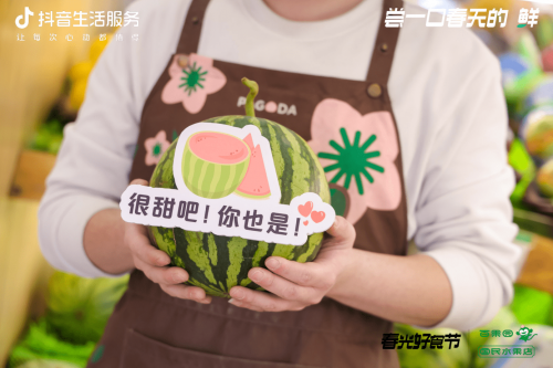 在春日鳳梨營銷旺季,百果園在上海推出了10家「春光好食節」嘗一口春天主題門店,配合抖音上新團品鳳梨,線下打造10家快閃店讓用戶進店隨處可見的水果文案與心理雞湯集合制作手舉牌,用吃水果的方式表達自己,吃的不僅僅是水果,也是一種生活態度。線下主題門店推出春季踏青限定打卡物料,線下設置抖音一店一碼物料鋪設引導ugc打卡,還有戴著可愛水果頭套的店員為用戶推薦春日好果。讓用戶行走在春日街頭,走進百果園仿佛走進春天的水果世界。
