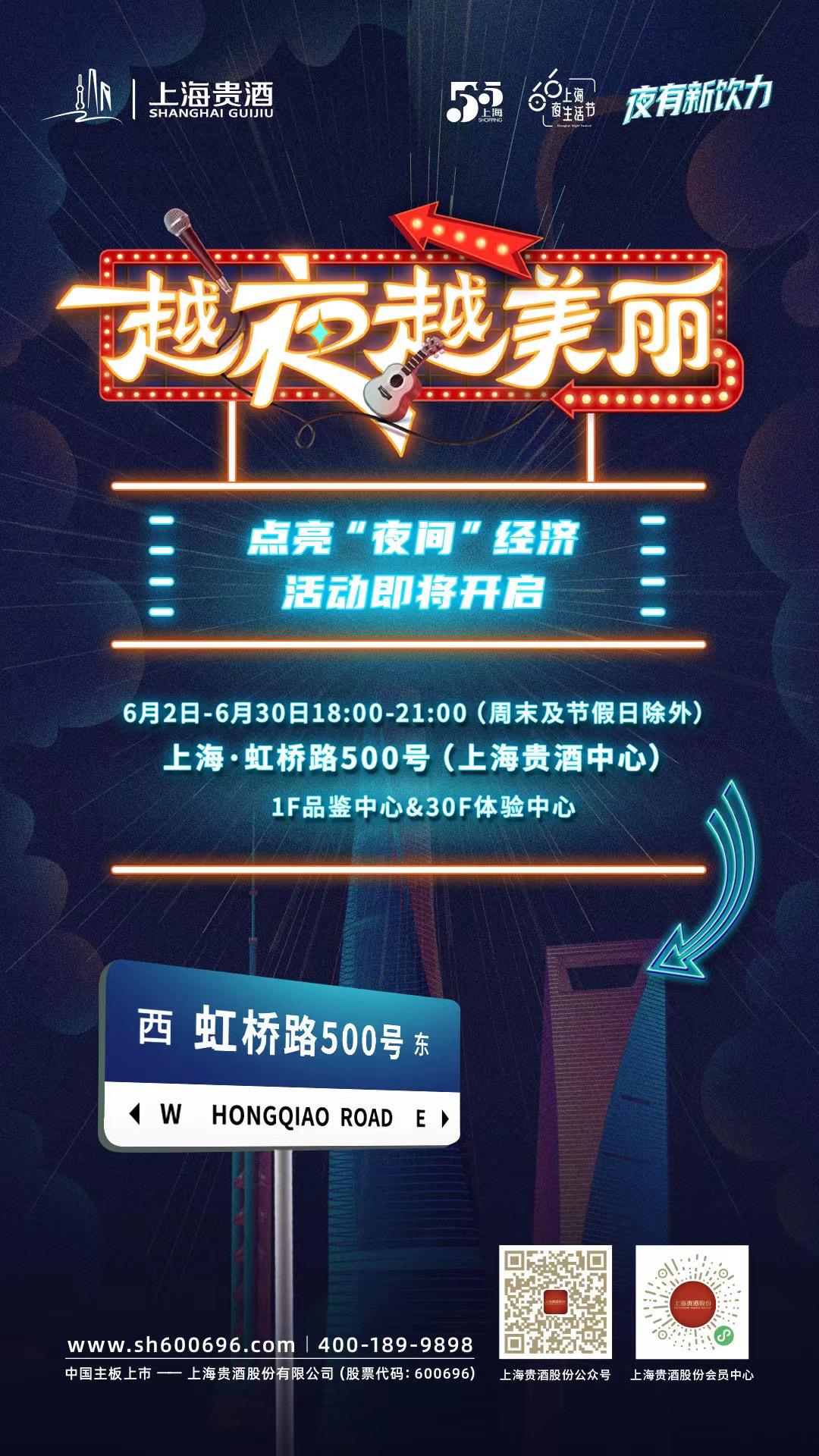 上海貴酒創(chuàng)新策劃的“虹橋路500號(hào)越夜越美麗”點(diǎn)亮“夜間”經(jīng)濟(jì)系列活動(dòng)也將從6月2日啟幕,橫跨整個(gè)6月,邀請(qǐng)品牌摯友齊聚虹橋路500號(hào)——上海貴酒徐匯品鑒中心和體驗(yàn)中心,點(diǎn)亮商圈潮流新“夜”態(tài),“飲”燃消費(fèi)新活力。從沉浸品鑒、花式特調(diào)到音樂(lè)、美食、青春街舞、房車(chē)生活,上海貴酒不斷打破創(chuàng)新邊界,將上海精神和品牌元素融入活動(dòng)設(shè)計(jì)中,打造出更高品質(zhì)、差異化的夜間消費(fèi)場(chǎng)景,在夜色中點(diǎn)亮城市文化名片,讓魔都“越夜越美麗”!