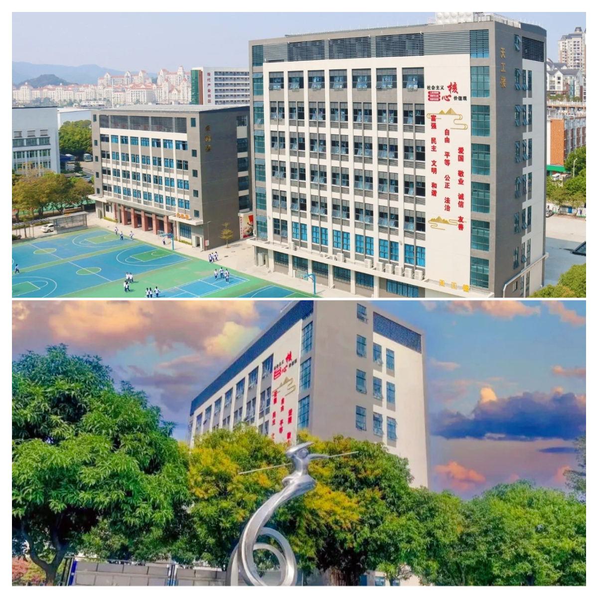 學校位于環境優美、交通方便的廣州門戶—花都區,地鐵9號線直達校區;學校總占地面積70000多平方米,兩個食堂,可容納6000人同時就餐,一個標準足球場及環形跑道,5個標準籃球場,一個學生文化廣場,動靜結合,為提供學生舒適優美的環境。