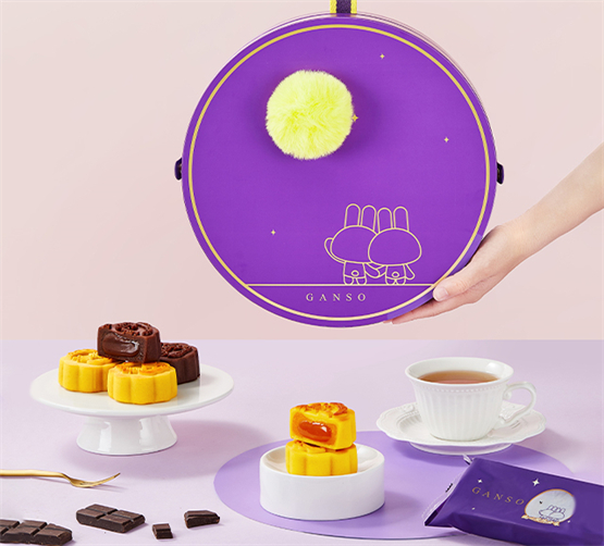 元祖脫兔戲月禮盒今年推出了流心奶黃和流心黑巧兩種無麩質(zhì)月餅。流心黑巧月餅甄選比利時巧克力精心制作,風味濃醇一口爆漿。流心奶黃月餅咸香濃郁,一口流心香氣四溢,獨特風味深獲年輕人青睞。其臺式桃山皮由白蕓豆制成,口感細膩綿密、低糖低脂,輕盈更健康。在包裝設(shè)計上,脫兔戲月創(chuàng)新采用圓形拎盒,并融入品牌IP脫兔咪兔與毛茸茸的月亮裝飾,整體萌趣時尚送給員工更顯新潮品位,全面提升員工滿意度與幸福感。