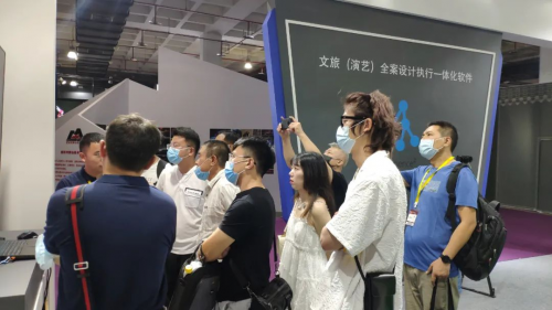 在第四屆舞美展首日,展廳內人潮洶涌,觀眾絡繹不絕,紛紛前來交流探討舞美燈光學術知識以及軟件相關信息。