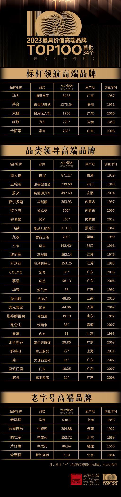 重磅!2023最具價(jià)值高端品牌TOP100(首批)榜單發(fā)布,卡薩帝、慕思、九牧、華帝、張?jiān)=獍偌{等品牌上榜(附榜單)