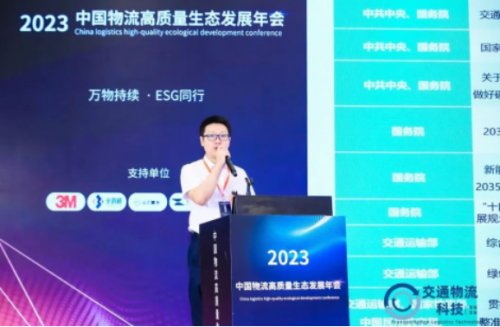 大會伊始,由中國交通運輸協會《人民交通》雜志社社長鄭德嶺先生致辭。鄭德嶺社長致辭表示雙碳不僅僅對于氣侯,更是企業應對不同環境市場氣侯變化的抓手,更是經濟發展和規則主導權博弈的焦點。安全韌性和綠色低碳是未來物流生態發展的主要內容。當前面對復雜多變的國際環境和瞬息萬變的技術革新,企業應盡快把握方向,謀篇布局,在激烈的市場布局中站領先機。