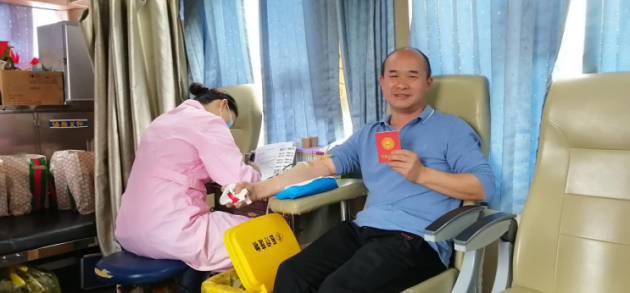 2020年疫情爆發以來,來賓市血站中心血液告急,得知消息后王洪主動召集員工參加無償獻血活動,自身血液各項指標經檢測合格后,年近50歲的他以身作則,挽起袖子第一個獻血。連續三年來,他個人共計捐獻了1200ML鮮血,員工52人次參與獻血,獻血量17500ML,以實實在在的行動為抗擊疫情傳遞愛的力量。