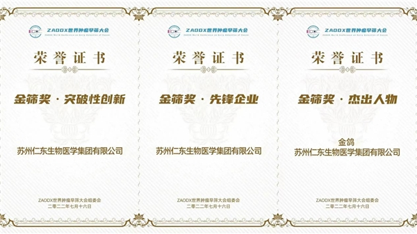 作為泌尿腫瘤精準診療的領軍企業,仁東醫學憑借在泌尿腫瘤早篩領域的技術沉淀和成果轉化,在本次大會中榮膺“突破性創新獎”和“先鋒企業獎”兩大獎項,同時,仁東醫學CEO金鴿女士也榮獲“杰出人物獎”,彰顯了業界對仁東醫學在早篩領域的創新實力的充分肯定及認可。