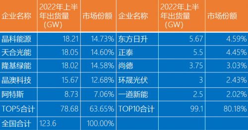 今年上半年,全國組件出貨量為123.6GW,前五大組件企業出貨量占比為63.65%,前十大組件占比80.18%。這些正在提高一體化程度的組件企業也決定著對上游電池片的采購量。