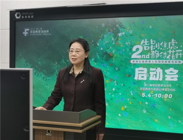 2023年5月4日上午10點,由中國家庭教育學會指導、成功之道(北京)教育科技股份有限公司主辦的第二屆家庭教育活動月(下稱“活動月”)在北京正式啟動。活動月主題為“告別焦慮,靜待花開:家、校、社協同育人機制的探索與實踐”。本次活動的主要目的是推動加強家庭教育專業人才隊伍建設,促進心理學技術在家校協同育人等領域的應用實踐,增進家庭幸福與社會和諧。